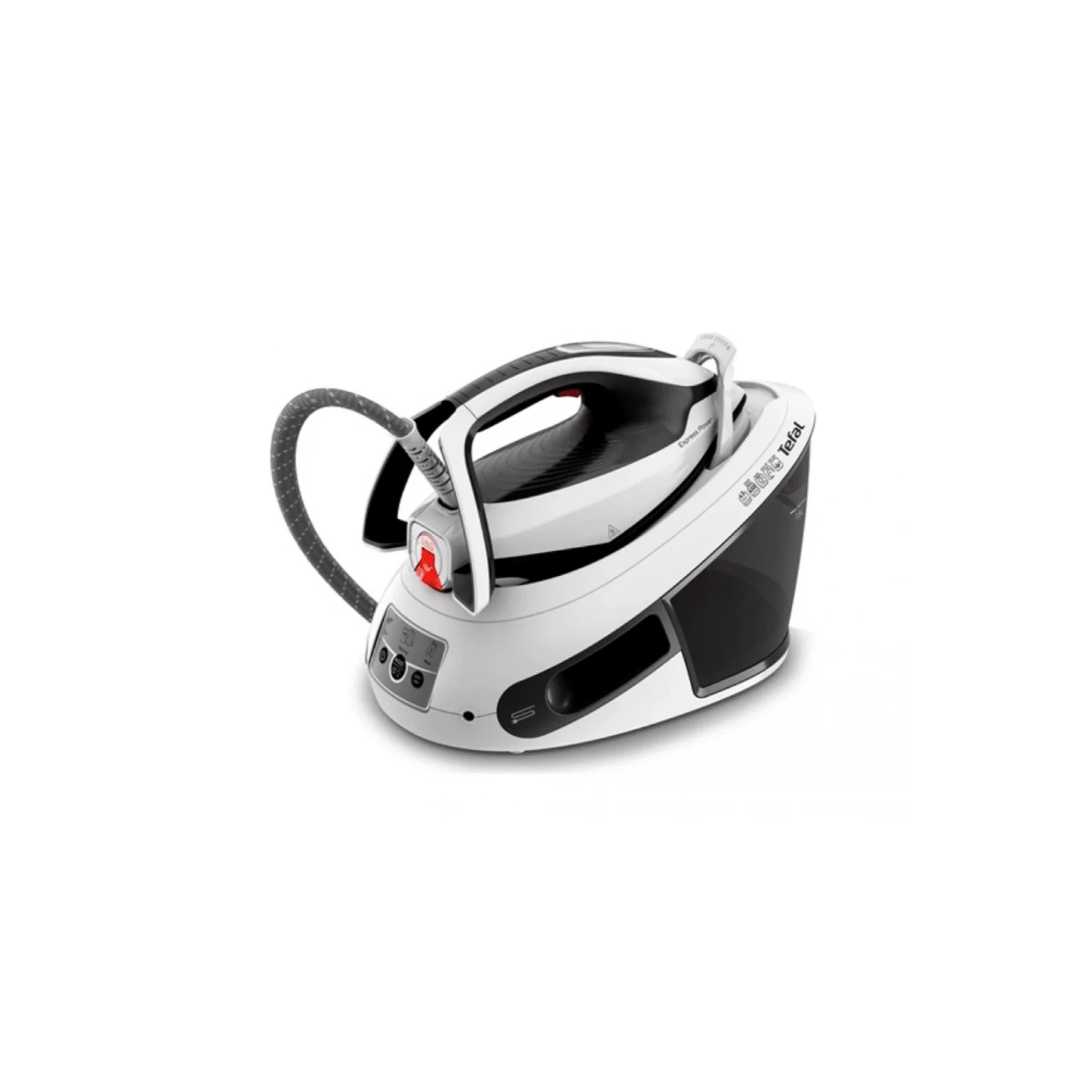 Tefal Express Power parna stanica SV8130E0.Udar pare 125 g/min,dodatni udar pare od 450 g/min.Pritisak 6,5 bara.Uklonjivi sakupljač kamenca,tehnologija tihe pumpe.Boja crno/bijela.